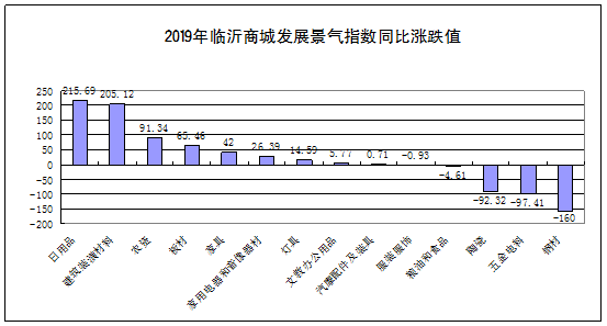 从指数走势看,2019年日用品类发展景气指数总体高于去年,保持平稳上涨态势。今年以来,日用品类市场继续稳中向好发展,交易量、交易额较去年稳步提升:一方面,随着临沂商城经营、销售模式不断转型升级,线上线下一体化发展带动市场辐射能力不断增强,客户群体更广,日用品类商品销售量逐年递增;另一方面,近几年我市以商城国际化为引领,“一带一路”建设不断推进,临沂商城“海外商城”建设加快,“买全球卖全球”的开放型经济格局逐渐形成,各项利好政策助推实现商城更好更快发展。其中,针纺织品类、卫生清洁日用品类、辅料和包装类、劳动防护用品类等地产品占比率较高的产品类销售量、销售额涨幅较大;首饰类、厨房用品类、护理及美容用品类、工艺品类、家居生活用品类等分流式销售的产品类行情也涨幅明显。日用品类市场需求一直以来都较为稳定,在今年经济发展压力较大的情况下行情上扬得益于临沂商城牢固的根基和稳中求进的商城国际化步伐。下一步依托临沂物流枢纽中心城市优势,预计日用品类市场将继续向好发展。