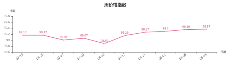 据临沂商城价格指数信息系统监测,本周临沂商城周价格总指数为99.37点,环比上涨0.01点。自4月10日以来,指数连续五周上扬,表明临沂商城市场整体行情稳中向好。