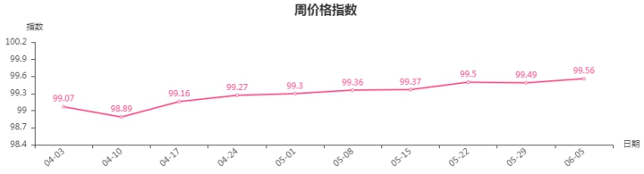 据临沂商城价格指数信息系统监测,本周临沂商城周价格总指数为99.56点,环比上涨0.07点。指数运行趋于平稳,受农忙、高温天气影响,临沂商城市场行情出现阶段性回落。