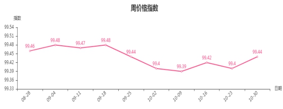 据临沂商城价格指数信息系统监测,本周临沂商城周价格总指数为99.44点,环比上涨0.04点。