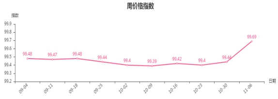 现将涨跌幅较大的6类商品周价格指数运行情况分析如下:
