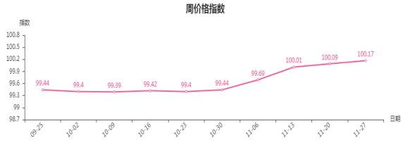 现将涨跌幅较大的6类商品周价格指数运行情况分析如下: