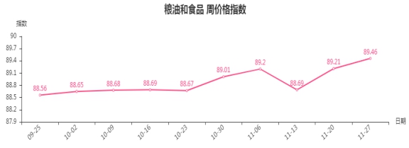 一、粮油和食品类周价格指数环比上涨