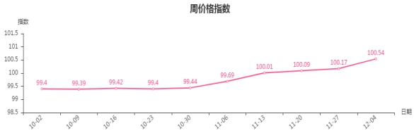 现将涨跌幅较大的6类商品周价格指数运行情况分析如下: