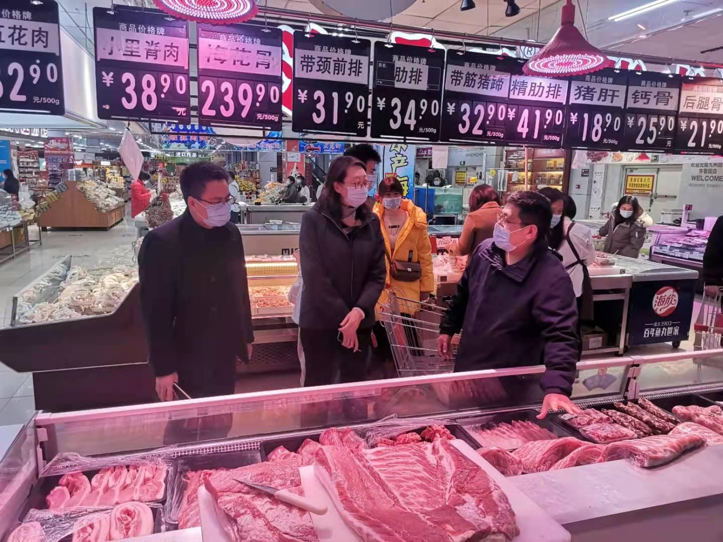 2月15日,为确保春节期间市场运行平稳,助力全市保供稳价工作,市发展改革委党组成员、市服务业办副主任陈琳琳带队到九州超市(齐鲁园店)、大润发超市、沂蒙大楼等商超开展主要生活消费品价格巡查工作。
