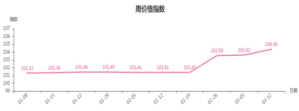 钢材指数持续上涨态势,涨幅较上周增大。进入三月份,钢材市场迎来行业传统旺季,从市场销售表现来看,场内交易以下游经销商备货为主,刚需采购量并未出现大幅上涨,而下游经销商采购积极性往往受到价格因素左右,买涨不买跌的心理较重,所以钢材价格上涨同时带动场内交易量上涨,这也导致下游市场库存逐渐充盈,市场供需关系基本平稳,预计后期钢材价格将以稳为主。从市场采集的规格品来看,型材中H钢本周均价4450元/吨,环比上涨6%;管材中76mm无缝钢管本周均价5342.86元/吨,环比上涨9%;直径10mm钢线材本周均价4400元/吨,环比上涨5.1%。。